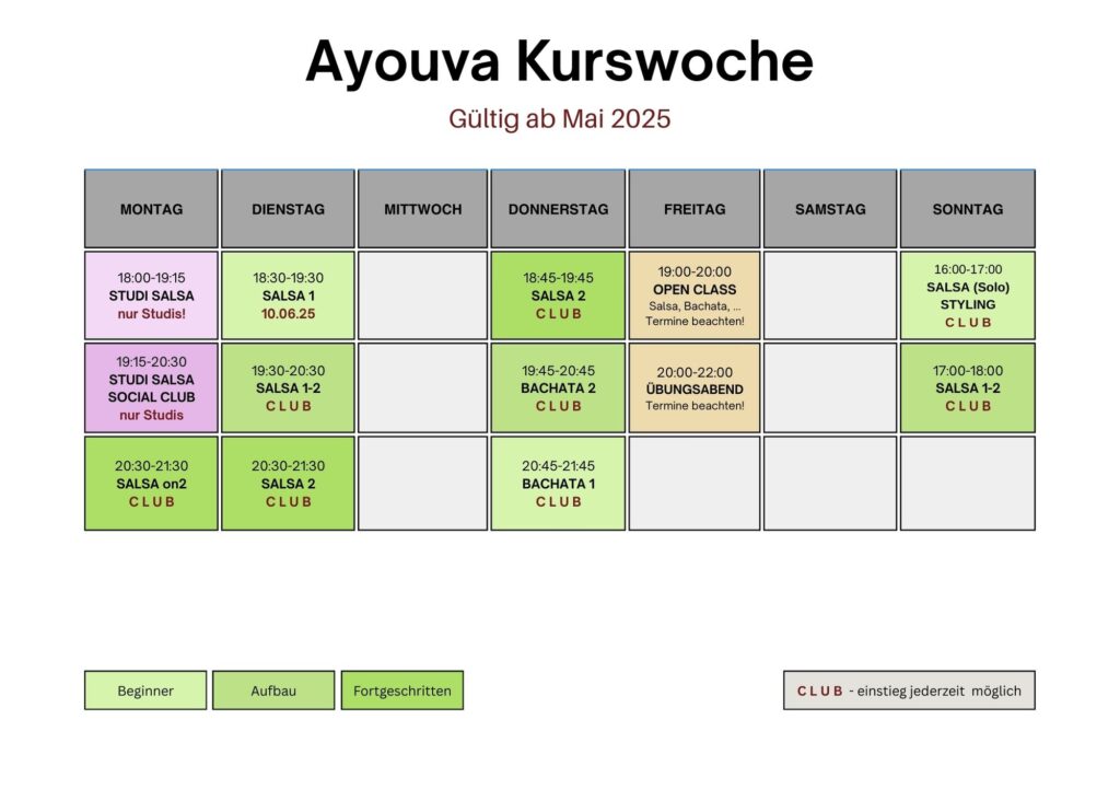 * Clubkurse: Einstieg jederzeit möglich. „OPEN CLASS“